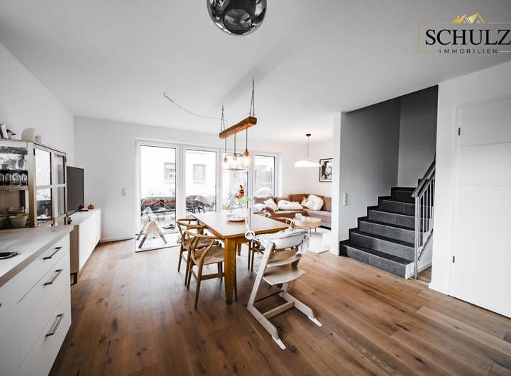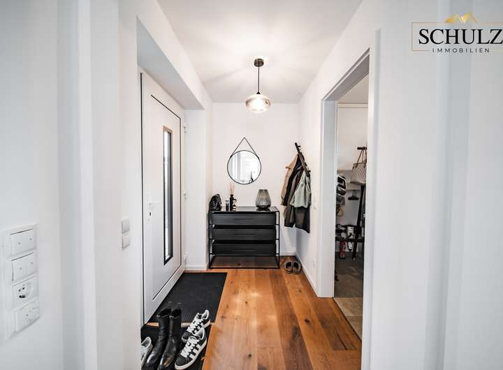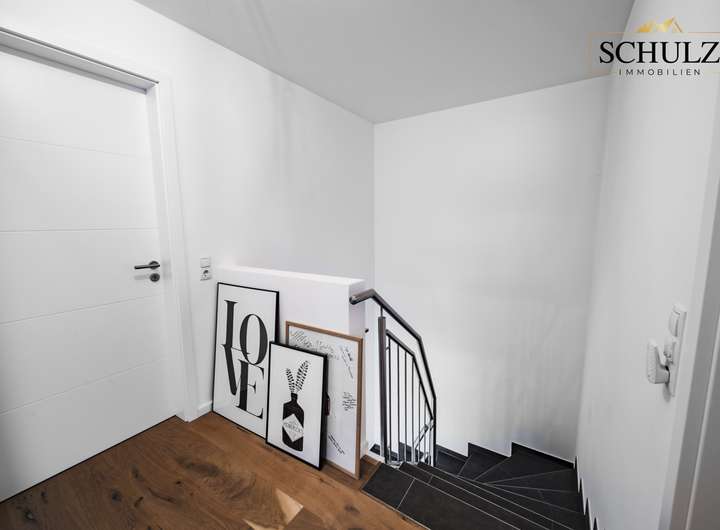 Der Innenbereich ist mit hochwertigen Materialien ausgestattet: Edles Parkett und stilvolle Fliesen verleihen den Räumen eine moderne Note, während die Fußbodenheizung in allen Räumen für wohlige Wärme sorgt.