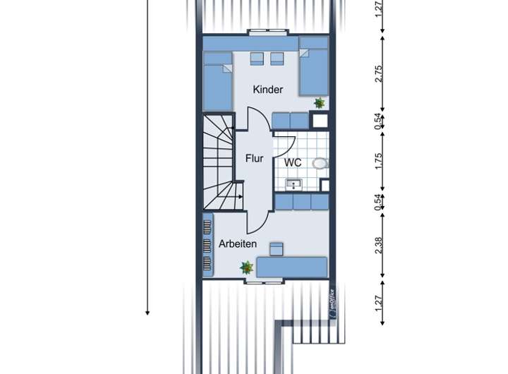 Im Dachgeschoss des Hauses erwartet Sie neben einem Dachstudio ein weiteres Kinder- oder Arbeitszimmer, das sich auch hervorragend als Gäste-Zimmer eignet, zumal auf dieser Ebene sich auch ein separates WC mit Waschbecken befindet.