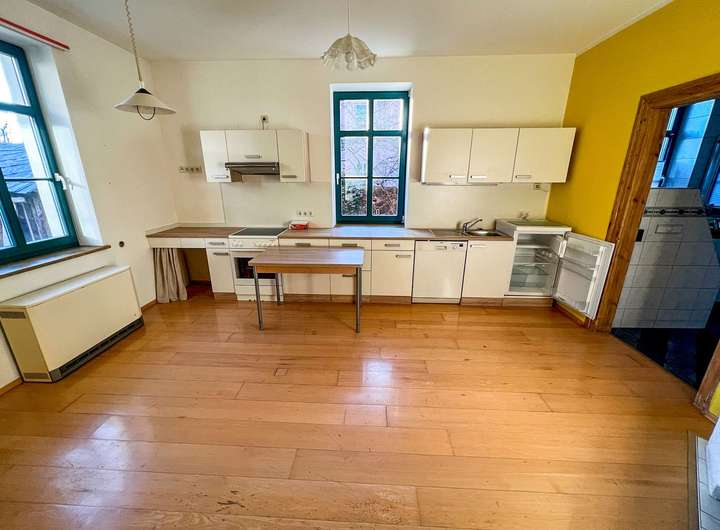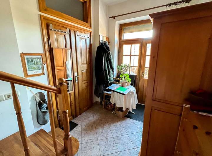 Das Haus ist aktuell in 4 schöne Wohnungen aufgeteilt. Im Erdgeschoss befindet sich eine großzügige 4-Zimmer-Wohnung mit Wintergarten, großer Essküche sowie einem Kaminofen. Diese ist aktuell leerstehend und wäre sofort bezugsfrei. Eine 2-Zimmer-Wohnung komplettiert die Etage.