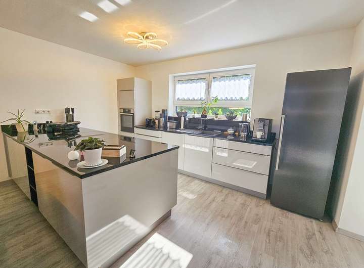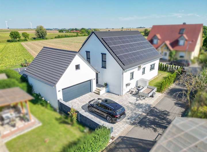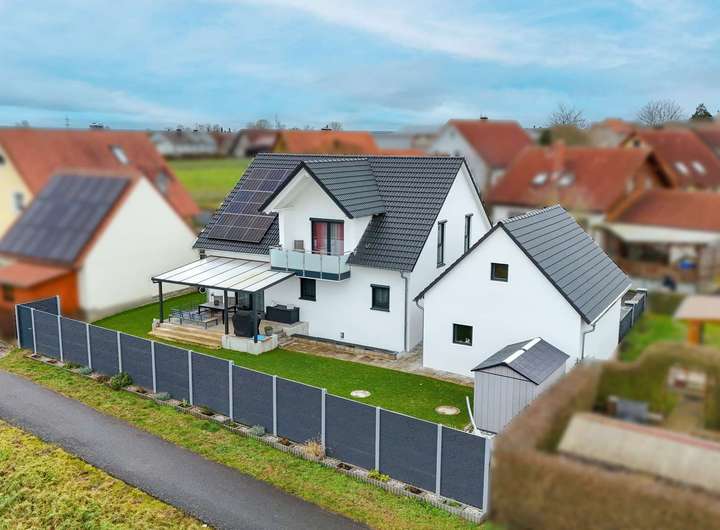 Sparen Sie sich den Stress vom Planen eines Neubauhauses sowie die Suche nach zuverlässigen Handwerkern und ziehen Sie ein in dieses neuwertige Einfamilienhaus mit Garten und Doppelgarage. 2021 wurde diese voll unterkellerte Immobilie in massiver Bauweise mit ca. 42cm Außenwänden auf einem ca. 559 m² großen Grundstück in einer ruhigen Wohngegend von Sonderhofen errichtet. Sie bietet nicht nur höchsten Wohnkomfort, sondern ist auch energetisch in einem sehr guten Zustand. Die Wohnfläche von ca. 247 m² verteilt sich auf drei Etagen und bietet genügend Platz für eine Familie. Der große, eingezäunte Garten bietet genügend Privatsphäre. Die leistungsstarke Photovoltaikanlage mit großem Stromspeicher lassen keine Wünsche offen. Ebenso die großzügige Doppelgarage mit Wallbox. Hier einige Highlights im Überblick: