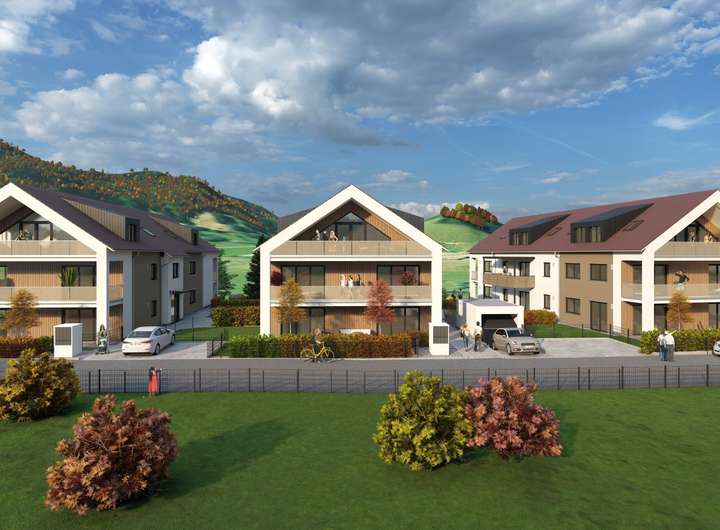In schöner Ortsrandlage von Pfronten -Weißbach auf dem Gelände eines ehemaligen Hotels entstehen insgesamt 24 hochwertige Wohnungen in drei Häusern mit je 8 Wohnungen.