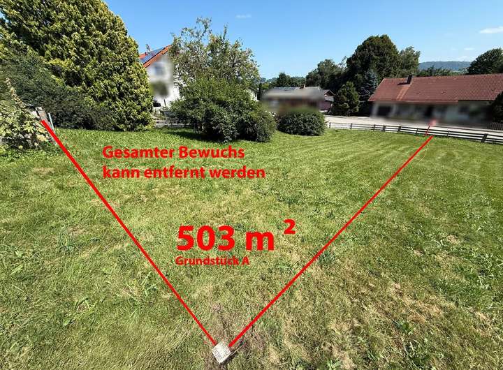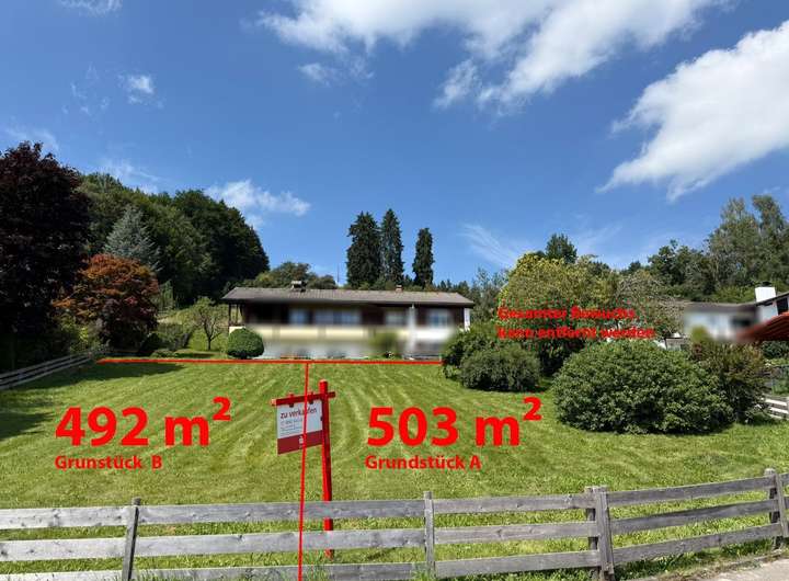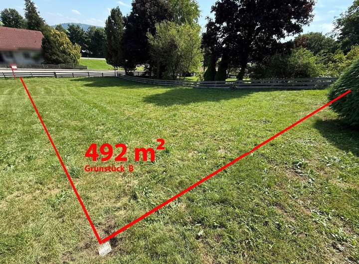 Es handelt sich um ein bereits vermessener Grundstücksteil mit einer Größe von ca. 492 m². Alternativ ist auch eine Fläche von ca. 503 m² zu erwerben. Natürlich können bei Bedarf auch beide Grundstücke zu einem großen vereint werden.