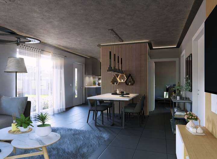 Unser Bungalow Cozy 2 bietet ein harmonisches Wohnerlebnis mit einem offenen Wohn-Essbereich, der nahtlos in den Garten übergeht. Diese Verbindung zur Natur sorgt für Entspannung und gesellige Stunden mit Familie und Freunden. Die funktionale Küche mit Speisekammer ermöglicht eine effiziente Vorratshaltung. Ein großzügiger Hauswirtschaftsraum unterstützt die Organisation des Haushalts, während das moderne Badezimmer mit Dusche für einen erfrischenden Start in den Tag sorgt. Das geräumige Schlafzimmer lädt zur Erholung ein und macht dieses Haus zum idealen Zuhause für Komfortliebhaber.