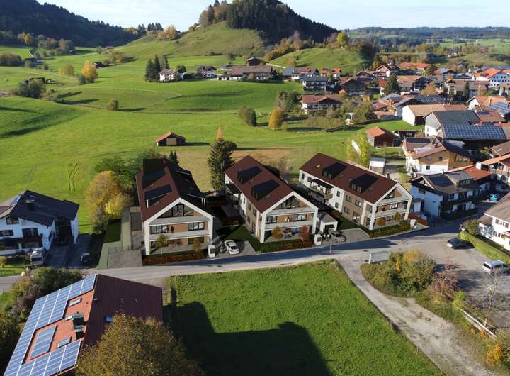 In schöner Ortsrandlage von Pfronten -Weißbach auf dem Gelände eines ehemaligen Hotels entstehen insgesamt 24 hochwertige Wohnungen in drei Häusern mit je 8 Wohnungen.