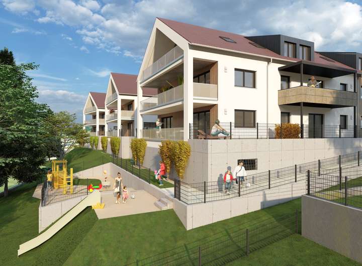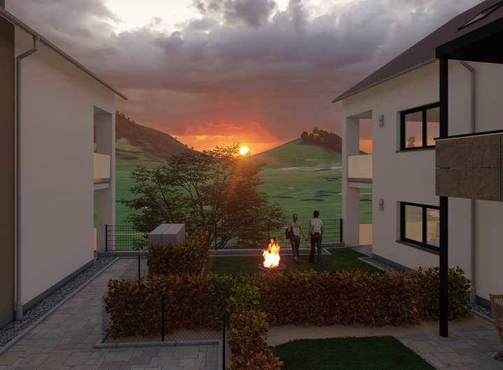 In schöner Ortsrandlage von Pfronten -Weißbach auf dem Gelände eines ehemaligen Hotels entstehen insgesamt 24 hochwertige Wohnungen in drei Häusern mit je 8 Wohnungen.