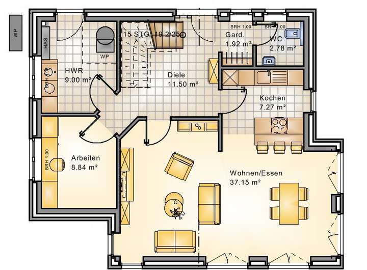 Nicht im Angebotspreis enthalten sind die Nebenkosten (Hausanschlüsse, Außenanlagen etc.)
