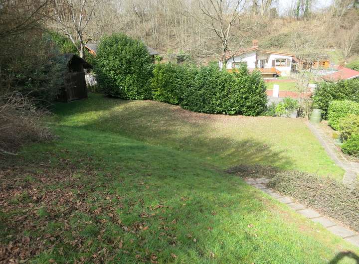 Baugrundstück am Stadtrand, sehr ruhige, naturnahe Lage am Ende einer Wohnstraße, trotzdem gute Infrastruktur und Citynah, im hinteren Teil Hanglage, von der Straße ansteigend, 973 m2 Areal