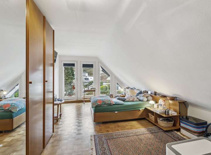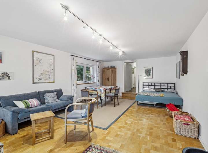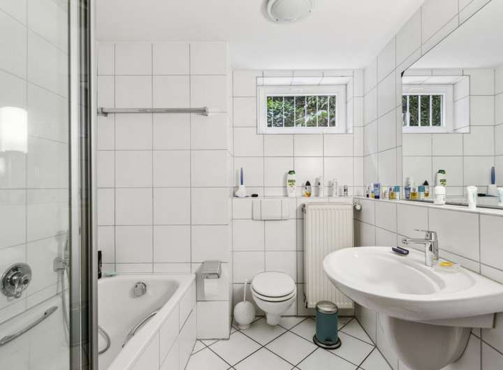 Das Untergeschoss beeindruckt mit einer Fülle an zusätzlichen Nutzungsmöglichkeiten: Neben Heizungs- und Abstellraum stehen ein Bastelraum, ein weiteres Badezimmer mit Tageslicht sowie ein großzügiges Gäste- oder Schlafzimmer zur Verfügung. Von hier aus führt der direkte Zugang in den gepflegten Garten, der Privatsphäre und Erholung gleichermaßen bietet.