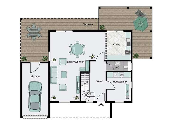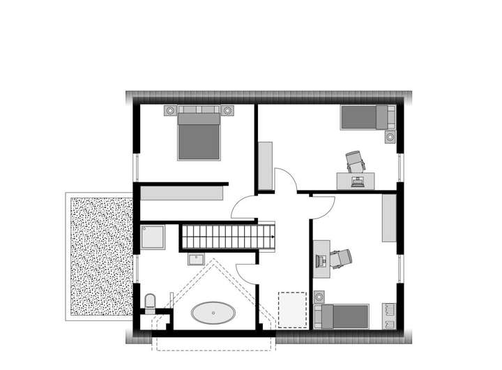 Der Angebotsumfang umfasst das Haus inklusive Fundamentplatte und dem dazugehörigen Grundstück. (Die Option für einen Keller besteht.)