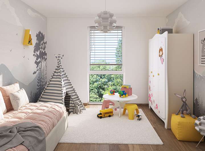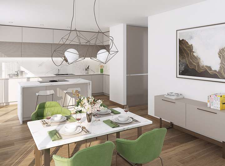 Die Innenausstattung der Wohnungen lässt keine Wünsche offen. Hochwertiger Design-Vinyl-Fußbodenbelag sorgt für eine moderne und pflegeleichte Oberfläche, während die strapazierfähigen Glasfasertapeten und die Kunststofffenster mit 3-fach-Verglasung für eine hohe Wohnqualität sorgen. Elektrische Rollläden und eine Fußbodenheizung gehören ebenso zur Standardausstattung wie eine moderne Videogegensprechanlage, die für zusätzliche Sicherheit sorgt.