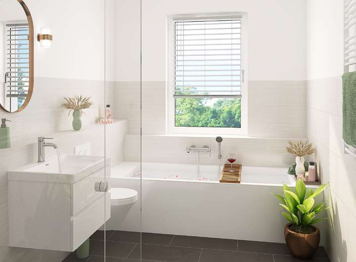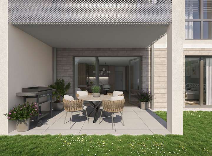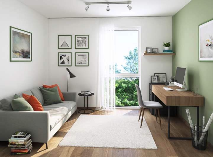 Die Innenausstattung der Wohnungen lässt keine Wünsche offen. Hochwertiger Design-Vinyl-Fußbodenbelag sorgt für eine moderne und pflegeleichte Oberfläche, während die strapazierfähigen Glasfasertapeten und die Kunststofffenster mit 3-fach-Verglasung für eine hohe Wohnqualität sorgen. Elektrische Rollläden und eine Fußbodenheizung gehören ebenso zur Standardausstattung wie eine moderne Videogegensprechanlage, die für zusätzliche Sicherheit sorgt.