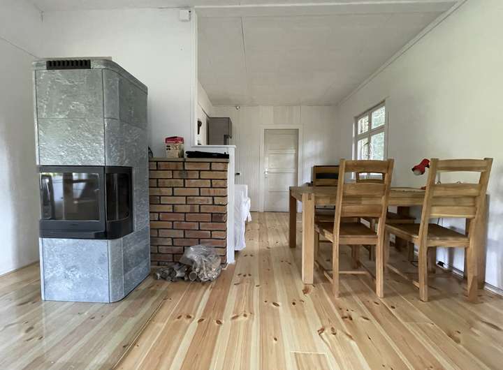 Aktuell befindet sich auf dem Grundstück das alte 1929 erstellte Holzhaus unserer Großeltern in bestem Zustand. Wir haben in den letzten 1,5 Jahren sehr viel für die geplante Sommernutzung investiert, so dass einer weiteren Nutzung als Sommerhaus nichts im Wege stünde. Das Haus ist nicht winterfest. Mit dem neuen Ofen wäre eine Frühjahrs- und Herbstnutzung aber möglich. Das separat vom Haus liegende WC-Duschhaus ist ebenfalls nicht winterfest.