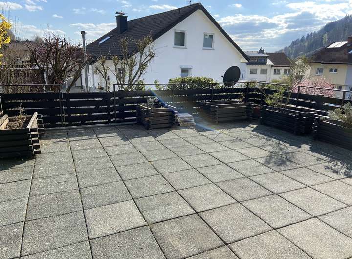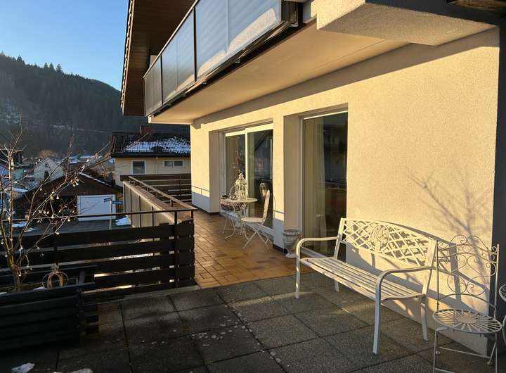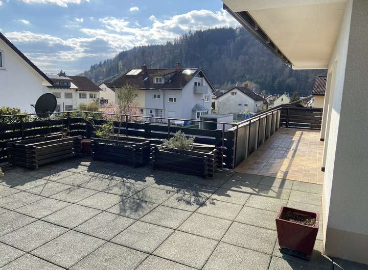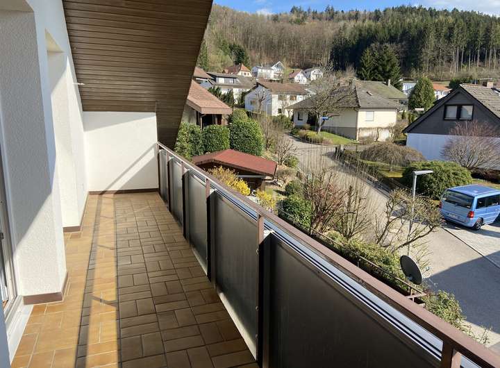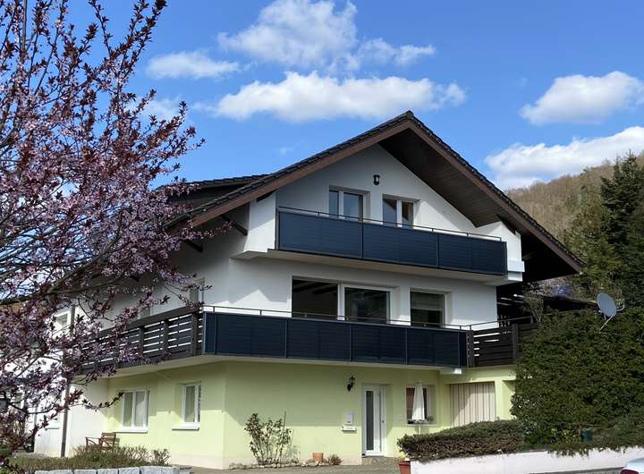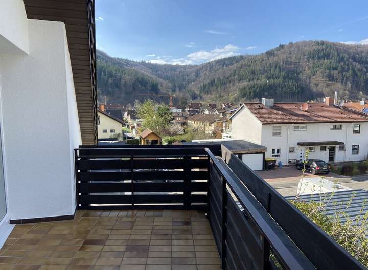 Außergewöhnliche hochwertig ausgestattete Maisonette-Wohnung mit drei Balkonen, Einbauküche, Stellplatz vor dem Haus, sowie idyllischem Garten in Schopfheim-Langenau zu vermieten.