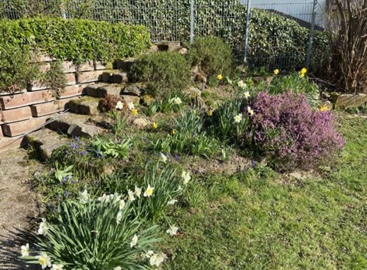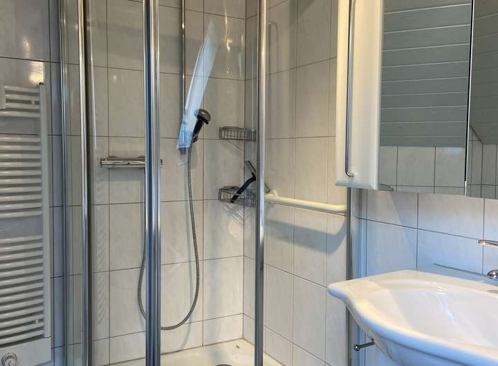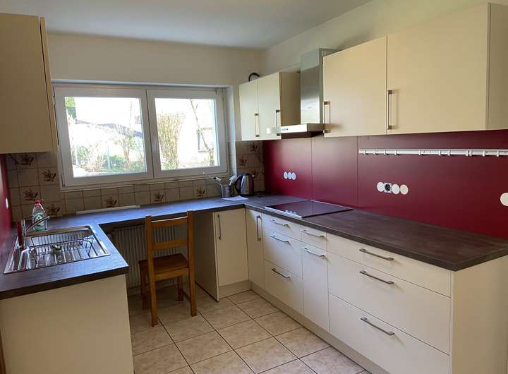 Im EG steht Ihnen außerdem noch eine neue Einbauküche (aus dem Jahr 2021), so wie ein angrenzendes Esszimmer (mit Zugang zum Garten) und ein Hauswirtschaftsraum zur Verfügung. Ein Gästezimmer/Büro (Parkett) und ein frisch renoviertes WC/Duschbad runden das Angebot ab.