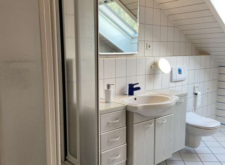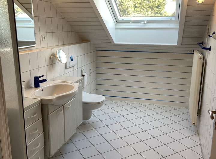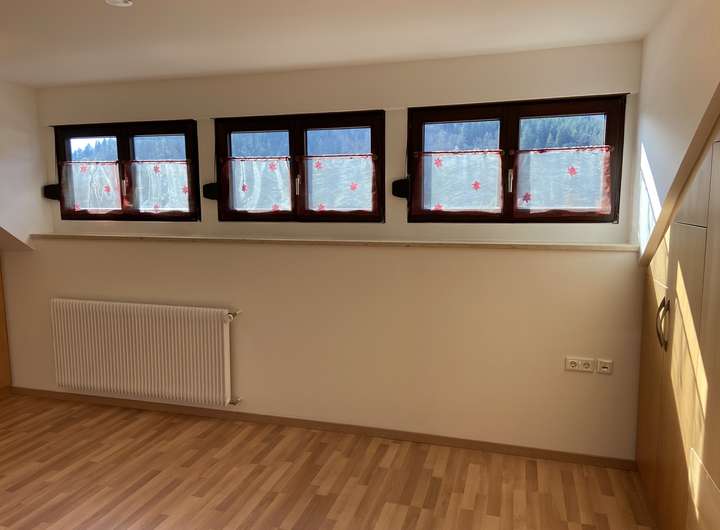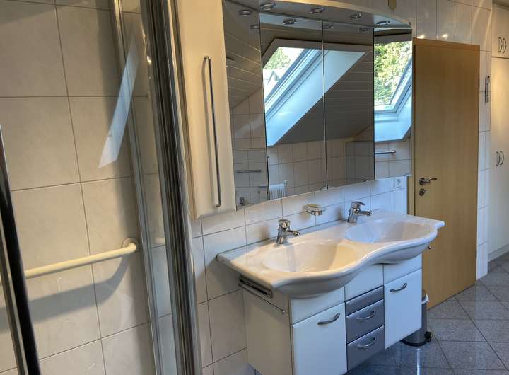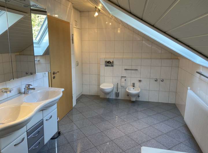 Das DG verfügt über vier Schlaf-/Kinderzimmer, die mit Laminatböden ausgelegt sind, und zwei separate Bäder. Zwei Zimmer haben einen Zugang zu einem überdachten Südbalkon, ein Zimmer hat einen separaten Balkon mit Blick ins obere Wiesental. Das große helle Badezimmer ist mit Dusche, WC, Doppel-Lavabo, Bidet und Handtuchheizung ausgestattet, das zweite Badezimmer ebenfalls mit neuer Dusche, WC und Lavabo.