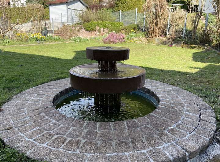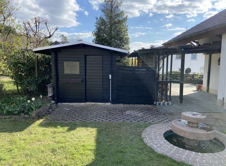 Der idyllische Garten mit Wasserspiel + Gartenhaus steht zu Ihrer alleinigen Verfügung.