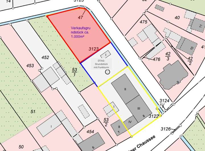Das Grundstück kann über das benachbarte Grundstück der Verkäuferin oder über andere Nachbargrundstücke erschlossen werden.