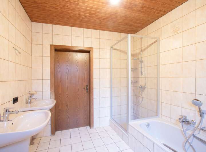 Die 5-Zimmer-Wohnung im Erdgeschoss ist sofort bezugsfrei und verfügt über eine nach Süden ausgerichtete Terrasse. Neben einem vollwertigen Badezimmer ist hier zudem ein Gäste-WC verfügbar. Sie finden hier neben dem großen Wohnzimmer, Küche und einem angrenzenden Esszimmer insgesamt drei Schlafzimmer vor.