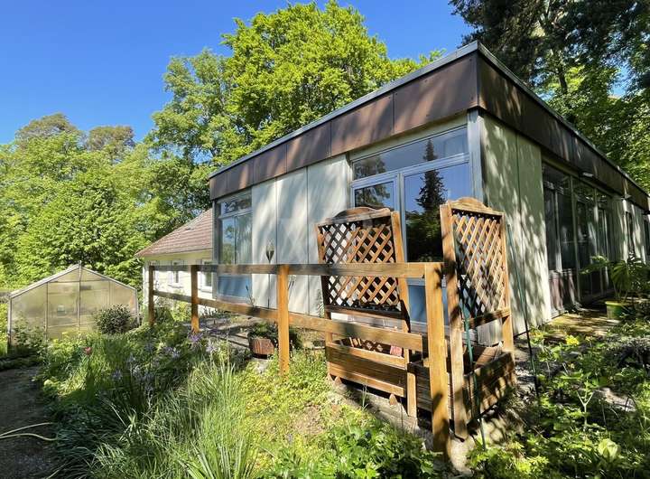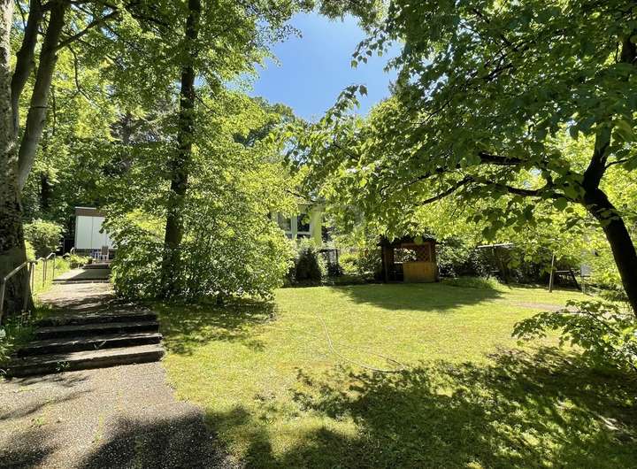Ein besonderes Highlight des Grundstücks ist der eingewachsene und gepflegte große Garten, der die beiden Häuser umgibt. Mit unzähligen Bäumen bietet der Garten nicht nur eine grüne Oase der Ruhe, sondern schützt auch vor neugierigen Blicken.