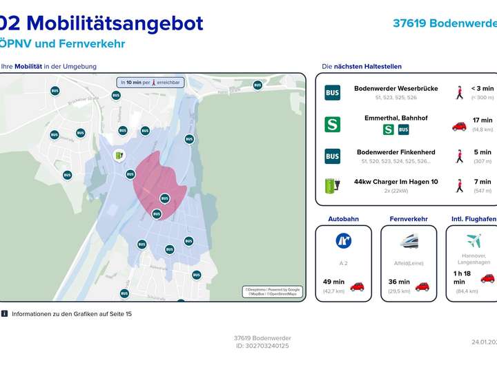 Einen Auszug aus unserem Lageexposee zu den Themen Einkaufsmöglichkeiten, Mobilität und Bildung finden Sie bei den Bildern.