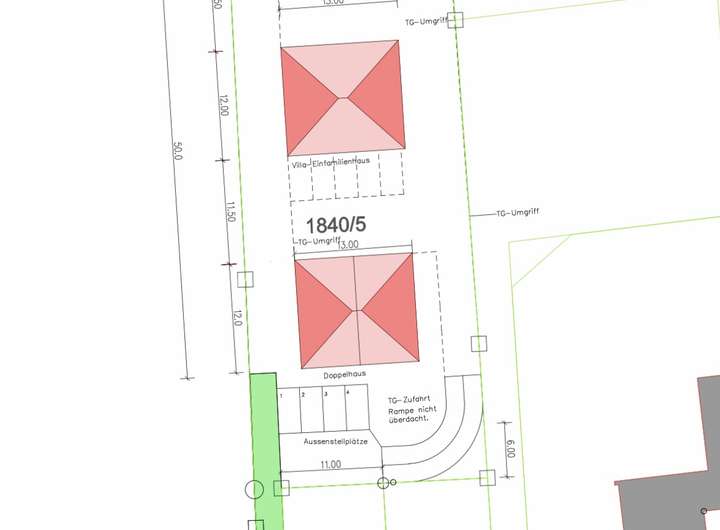 ** Hochattraktives Baugrundstück (2.046 m²) mit genehmigten Plan für 2x Villa und 1x DH **