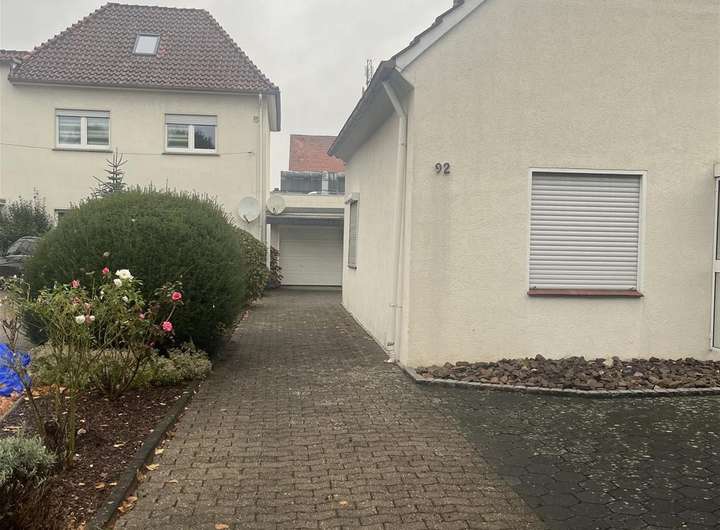 Auf dem Grundstück gepflasterte Zufahrt, Garage