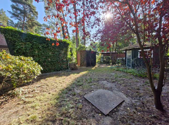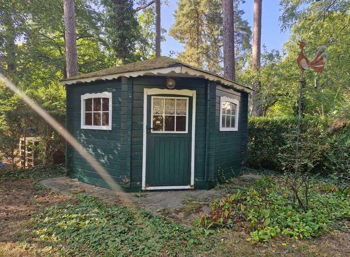 Im Garten befinden sich ein Hobby-Nebengelass mit ca. 16 m² Fläche, ein praktischer Carport (ca. 12 m²), ein reizender kleiner (Tee-) Pavillion sowie zwei PKW-Stellplätze.
