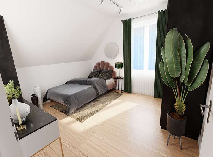 Mit fünf großzügigen Zimmern bietet das Anwesen viel Platz für Familien oder Paare, die eine großzügige und durchdachte Raumaufteilung zu schätzen wissen. Das Erdgeschoss umfasst ca. 99 m² und das Dachgeschoss ca. 79 m². Bei Bedarf nach einer größeren Zimmerzahl können zwei sehr große geteilt werden.