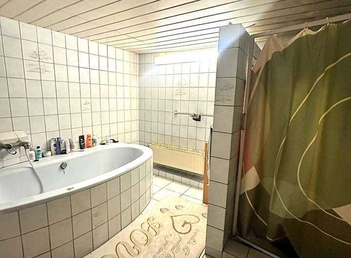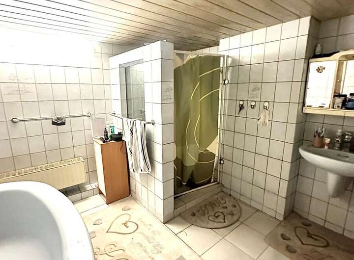 Im Untergeschoss befindet sich ein großzügiges Badezimmer mit Dusche und Badewanne – der perfekte Ort, um nach einem langen Tag zu entspannen. Der Keller bietet außerdem ausreichend Platz für Abstellmöglichkeiten und einen Hauswirtschaftsraum.
