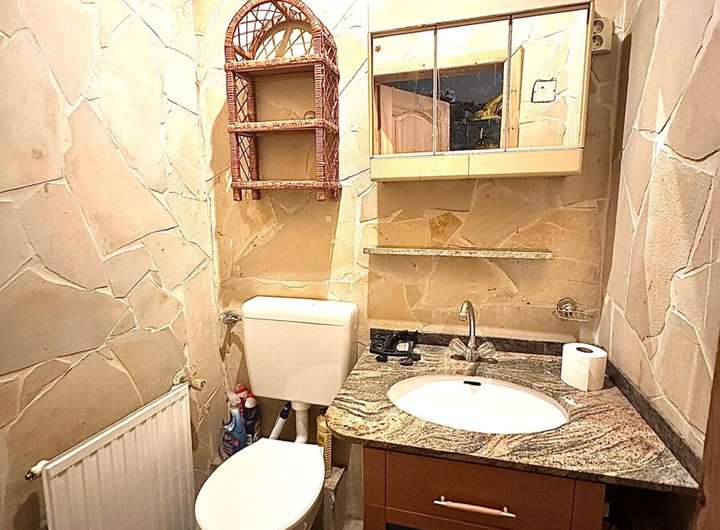 Im Erdgeschoss erwartet Sie eine Küche, die genügend Platz für kreative Kochabende bietet. Das großzügige Wohn- und Esszimmer ist der zentrale Raum des Hauses und eignet sich perfekt für gesellige Runden oder entspannte Abende. Eine zusätzliche Toilette im Erdgeschoss sorgt für Komfort.