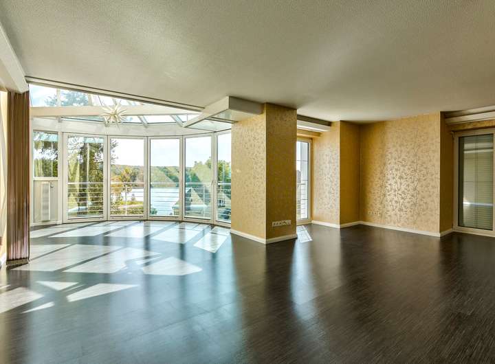Die nach Südosten ausgerichtete Terrasse ist der perfekte Ort für Sonnenhungrige und gesellige Stunden mit der Familie und Freunden. Außerdem steht Ihnen ein Balkon und ein Wintergarten mit vollflächig zu öffnender Fensterfront im Studio zur Verfügung. Diese bieten spektakuläre Ausblicke auf den Kalksee und die umliegende Natur. Zusätzlich sorgen für gemütliche Stunden ein Echtholz-Kamin und eine Sauna im großzügigen Vollbadezimmer.