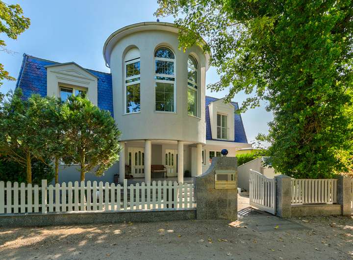 Wir freuen uns, Ihnen diese außergewöhnliche 3-geschossige Villenhälfte vorstellen zu dürfen. Die Architektenvilla wurde im Jahr 1997 auf einem Hanggrundstück massiv erbaut und befindet sich am malerischen Kalksee in Woltersdorf. Dieses traumhafte Anwesen vereint luxuriöses Wohnen mit unmittelbarem privaten Zugang zu einer der schönsten Wasserlagen der Region - eine ideale Kombination aus Rückzugsoase und Nähe zu Berlin.