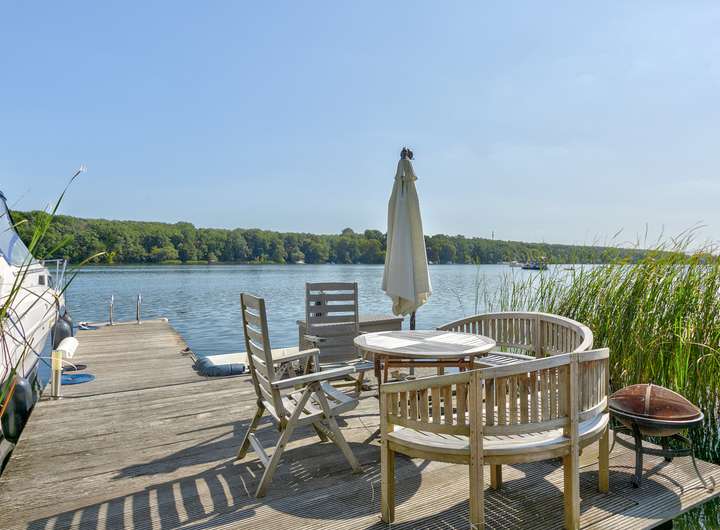 Villenhälfte auf idyllischem Hanggrundstück mit Wasserzugang und eigenem Bootssteg am Kalksee