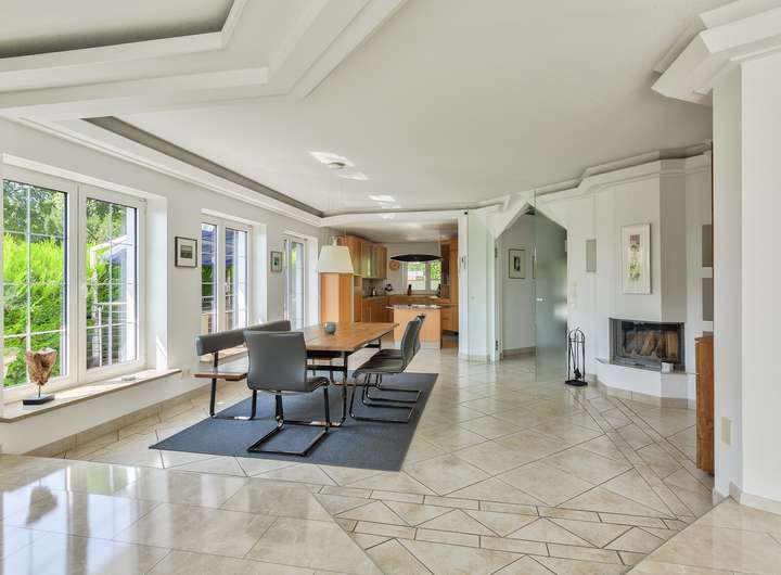 Mit hohem Komfort und Funktionalität wurde diese beeindruckende Architektenvilla geplant und gebaut. Eine großzügige Wohn-/Nutzfläche auf 4 Etagen von ca. 407 Quadratmetern mit 7 Zimmern und einer beheizbaren Tiefgarage komplettiert dieses besondere Angebot.