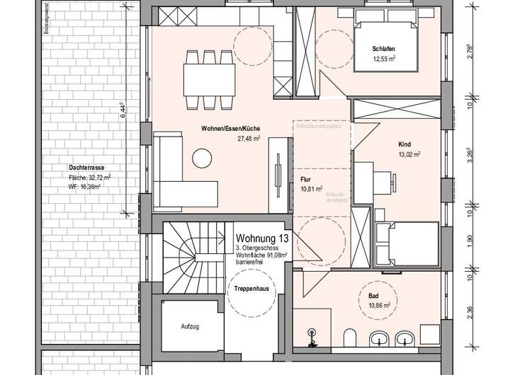 Die hier zum Verkauf stehende Penthouse-Wohnung liegt im 4 Stock eines modernen Wohnhauses mit 13 Wohneinheiten. Die Wohnung ist großzügig geschnitten und bieten somit viel Platz für individuelle Gestaltungsmöglichkeiten. Auf der über 30qm großen Dachterrasse können Sie beim Abendessen den Sonnenuntergang genießen.