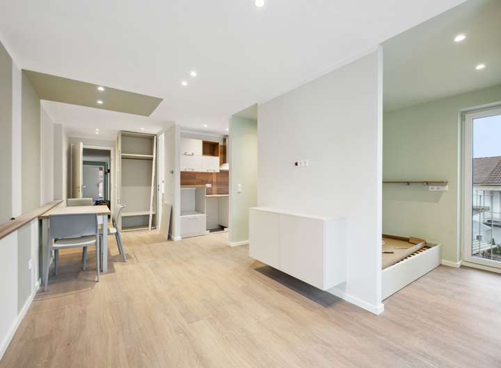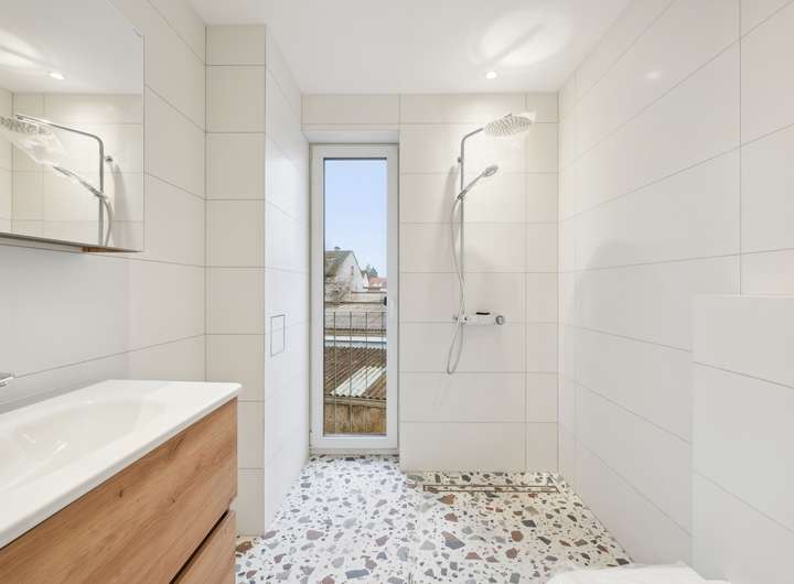 Im Erdgeschoss des Gebäudes finden Sie einen Bäcker, der täglich frische Brötchen und köstliche Backwaren anbietet. Die nachhaltige Bauweise und moderne Architektur fügen sich harmonisch in die urbane Umgebung ein, die zahlreiche Freizeit- und Einkaufsmöglichkeiten sowie Restaurants bietet.