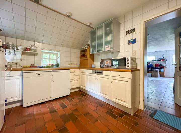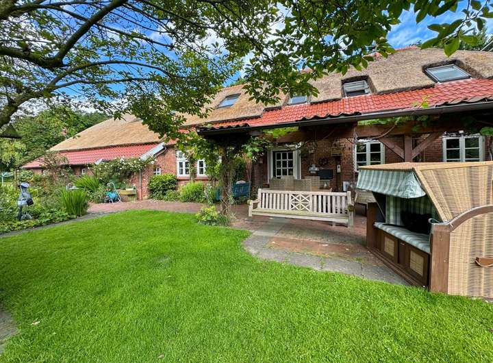 Das reetgedeckte Wohnhaus strahlt eine zeitlose Eleganz aus und bietet zusammen mit den anderen Gebäuden auf dem Grundstück eine Gesamtwohnfläche von großzügigen 307 Quadratmetern, die reichlich Raum für individuelles Wohnen und vielfältige Nutzungsmöglichkeiten bietet.