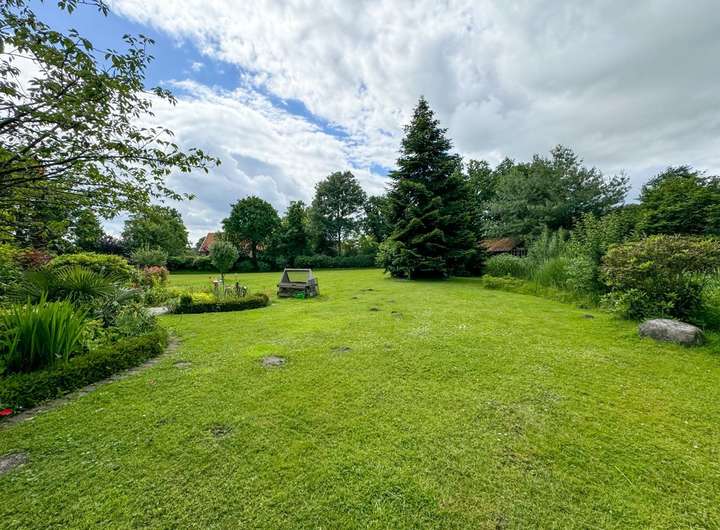 Das weitläufige Grundstück von 5701 Quadratmetern umgibt das Anwesen mit einer bezaubernden Gartenanlage, die liebevoll gestaltet wurde und zum Verweilen und Genießen einlädt. Ein idyllischer Naturteich fügt sich harmonisch in die Umgebung ein und schafft eine Oase der Ruhe und Entspannung. Dieses Anwesen wurde in den letzten Jahren grundlegend und