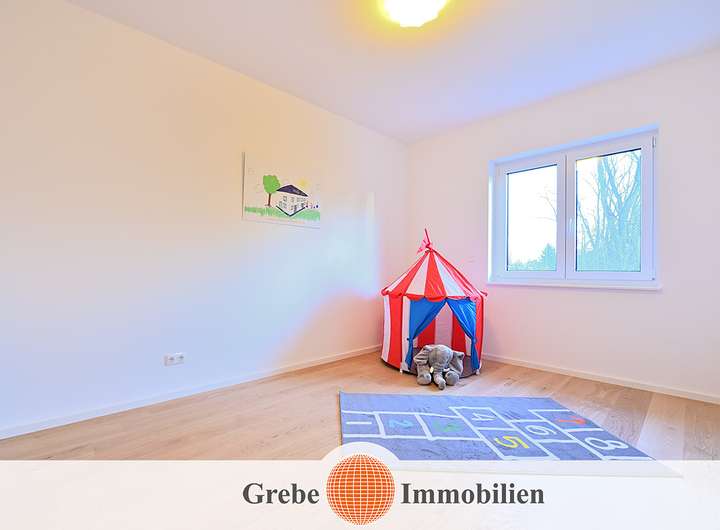Nach dem Essen geht es ab ins Obergeschoss – die großzügigen Schlafzimmer bieten Platz für Kuschelecken, Bücherregale und kleine Traumwelten. Nach dem abendlichen Zähneputzen ihrer Kinder genießt Lisa noch ein warmes Bad in der modernen Badeoase und Tom überrascht sie mit ihrem Lieblingswein – ein schöner Moment der Ruhe, bevor das Haus wieder langsam in den Schlaf fällt.