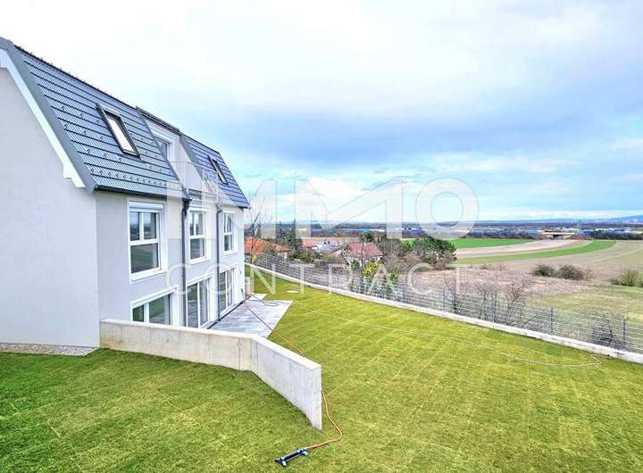 Dieses luxuriöse Haus ist nach Süden ausgerichtet und besticht durch sein großes Grundstück von ca. 861 m2. Durch die leichte Hanglage ist es teilunterkellert und punktet außerdem mit geräumigem Wohn-/Esszimmer mit Küche und Ausgang zur großen Terrasse auf Gartenebene. Drei Schlafzimmer, Bad, separates WC, Abstellraum und großes Vorzimmer finden Sie im Erdgeschoß. Im Dachgeschoß finden Sie 2 Atelierzimmer mit grandiosem Ausblick!
