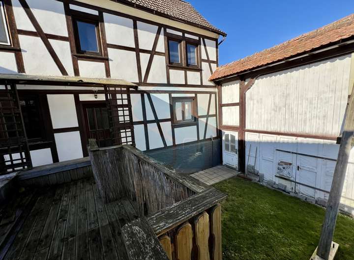 Dieses historische Fachwerkhaus aus dem Jahr 1880 befindet sich im malerischen Ortsteil Hoch-Weisel der Stadt Butzbach. Mit einer Gesamtwohnfläche von ca. 129 m², verteilt auf Erd- und Obergeschoss, bietet es ausreichend Platz für individuelles Wohnen. Das ausgebaute Dachgeschoss dient als zusätzliche Nutzfläche und eröffnet vielfältige Nutzungsmöglichkeiten. Das Objekt befindet sich unweit des örtlichen Kindergartens und ist daher für junge Familien ein idealer Standort. Erdgeschoss: Hier befinden sich ein großzügiger Wohnbereich, eine Küche sowie ein Badezimmer, das in den 1990er Jahren modernisiert wurde. Obergeschoss: Das Obergeschoss beherbergt mehrere Schlaf- und einem Zugang zum Nebengebäude welches als Hobbyraum genutzt werden kann. Ein weiteres Badezimmer wurde bereits vorbereitet und kann nach eigenen Vorstellungen ausgebaut werden. Dachgeschoss: Das bereits ausgebaute Dachgeschoss bietet zusätzliche Nutzfläche, ideal für Hobbyräume oder als Stauraum. Modernisierungen: Heizung: Eine effiziente Pelletheizung wurde im Jahr 2009 installiert und sorgt für wohlige Wärme. Elektrik: Die Elektrik des Hauses wurde in den 1990er Jahren erneuert und entspricht den damaligen Standards. Badezimmer: Die Bäder wurden ebenfalls in den 1990er Jahren modernisiert und bieten zeitgemäen Komfort. Außenbereich: Im idyllischen Innenhof lädt eine großzügige Terrasse zum Verweilen und Entspannen ein. Ein kleiner Rasenanteil ergänzt den Außenbereich und bietet Platz für gärtnerische Aktivitäten. Das Objekt ist sofort verfügbar und wartet auf den letzten Schliff für den zukünftigen Eigentümer. Haben wir Ihr Interesse geweckt? Wir freuen uns auf Ihre Anfragen!
