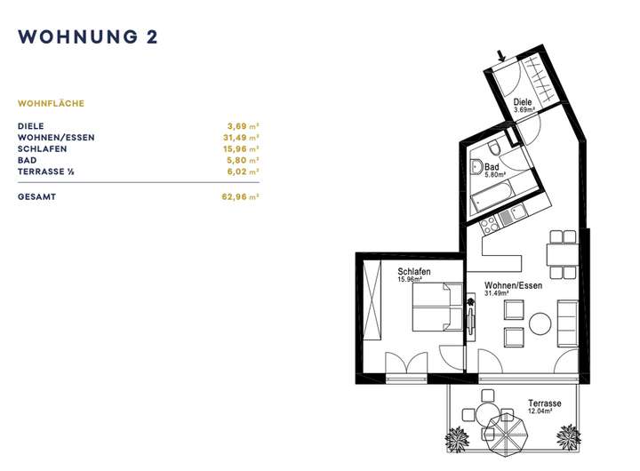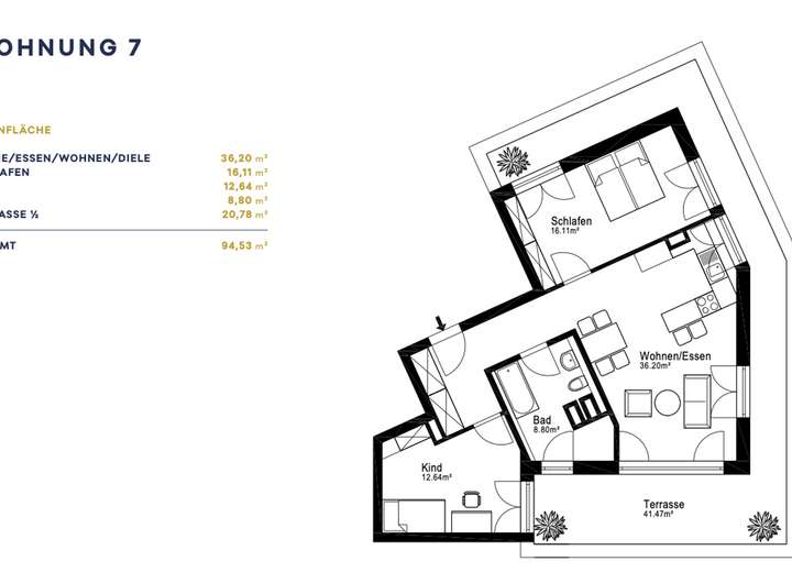 • Jede Wohnung mit großzügigem Balkon, Terrasse oder exklusiver Dachterrasse.