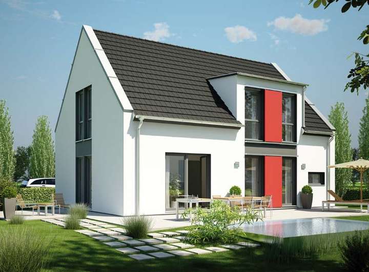 Bei dem hier beworbenen Angebot handelt es sich um eine Beispielbebauung auf einem vorhandenen Baugrundstück (Abbildungen z.T. mit optionaler Sonderausstattung/Zubehör).