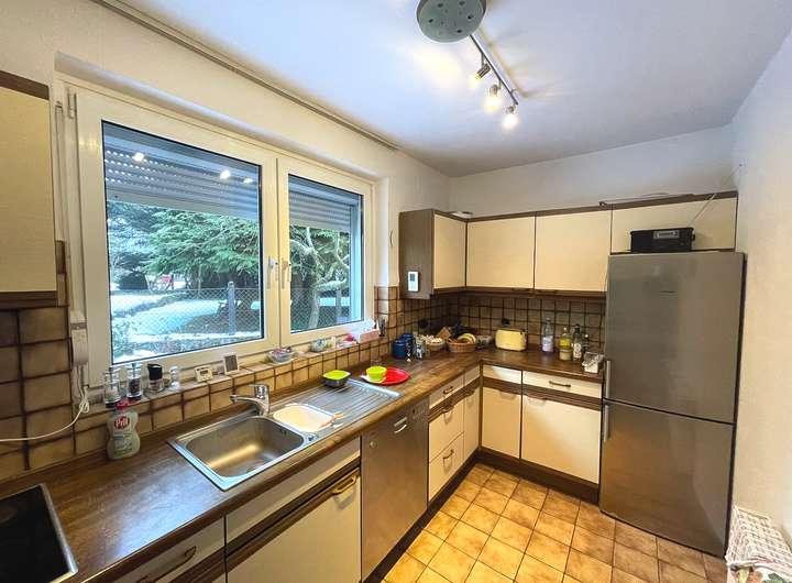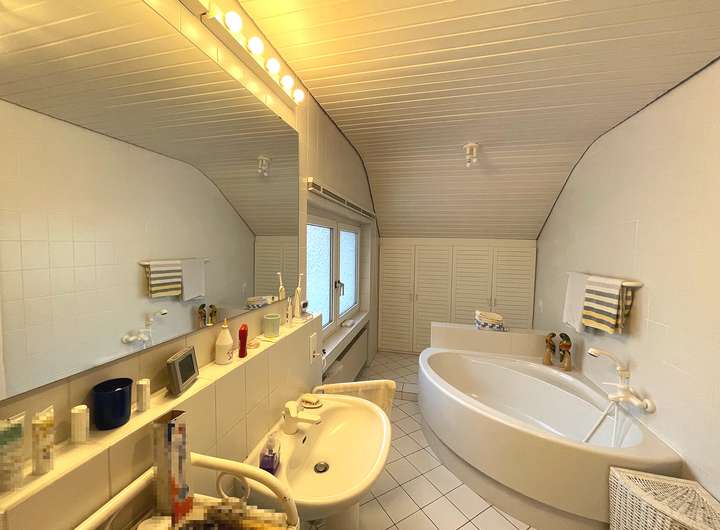 Wir weisen an dieser Stelle auf das Foto "Fußbodenabsenkung EG" hin. Dieses zeigt eine Absenkung im Fußbodenbereich des Esszimmers. Hier befindet sich der Übergang zwischen dem unterkellerten und nicht unterkellerten Bereich des Hauses. Dies scheint aus einem Zusammenspiel einer schlechten Gründung des nicht unterkellerten Bereiches sowie einer Unterspülung durch ein defektes Abwasserrohr entstanden zu sein. Es müsste im Rahmen einer möglichen Sanierung/Modernisierung die Statik dahingehend analysiert und angepasst werden. Ein entsprechender Abschlag im genannten Angebotspreis ist bereits berücksichtigt!