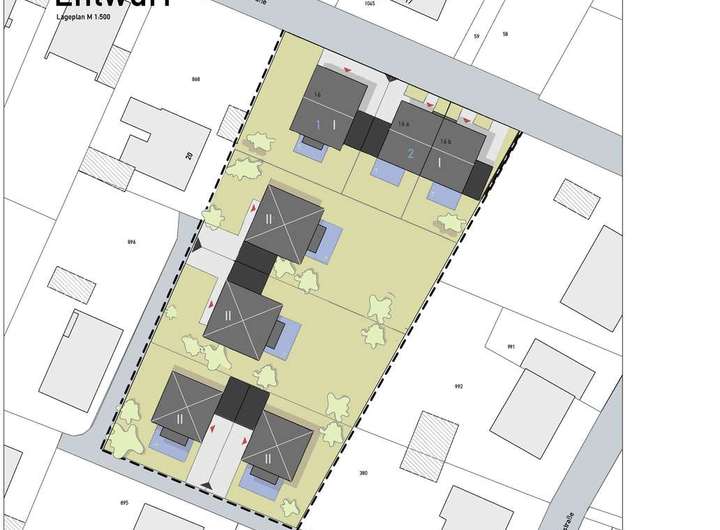 Auf einem tollen großzügigen Grundstück mit abgängigem Altbestand sollte nach erster Betrachtung durch den Architekten im Rahmen des Einfügungsgebotes ein Angebotsmix aus Ein- und Mehrfamilienhäusern möglich sein.