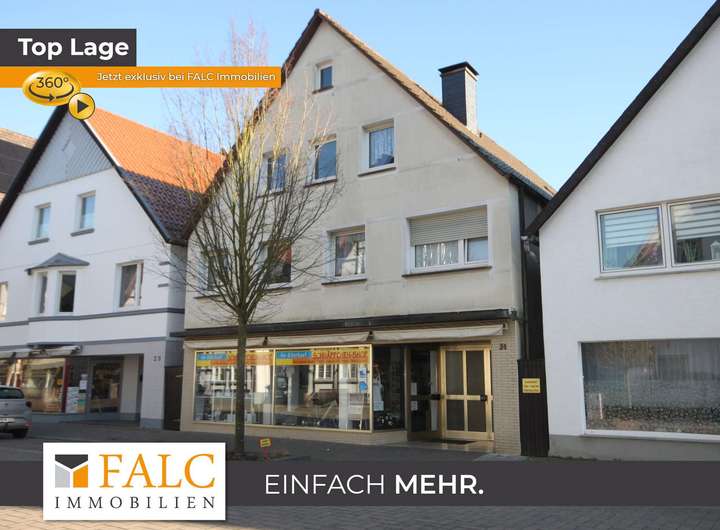 Zum Verkauf steht ein Mehrfamilienhaus in Lügde mit einer Wohnfläche von insgesamt 182 m², aufgeteilt auf zwei Wohneinheiten und einem Ladenlokal mit 75 m². Seit Juli 2025 befindet sich in diesem Ladenlokal eine Postfiliale.