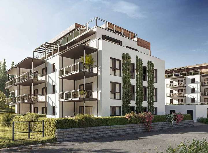 Besonders hervorzuheben ist die durchdachte Architektur, die Ihre Privatsphäre in den Vordergrund stellt; von Ihrem Balkon aus bleibt der Kontakt zu den Nachbarn diskret minimiert. Die beiden Wohngebäude sind mit bedacht platziert, um großzügigen Raum zwischen ihnen zu lassen. Zudem bieten die Erdgeschosswohnungen exklusive Privatgärten, die ein eigenes Stück Natur direkt vor Ihrer Tür garantieren. Bei der Konzeption der Wohnungen legten wir großen Wert nicht nur auf Ästhetik und Qualität, sondern auch auf herausragenden Schallschutz, um Ihnen ein ungestörtes Wohnerlebnis zu sichern.