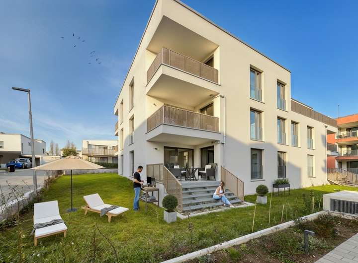 Das Projekt Burgweg West III zeichnet sich durch die nachhaltige und moderne Bauweise und Architektur aus, welche den Quartiersplatz mit Spielplatz im Neubaugebiet schützend umschließen sowie als zentraler Treffpunkt im Neubaugebiet fungiert. Der begrünte Innenhof mit Spielplatz und privaten Gärten lädt sie zum Verweilen ein. Das Projekt umfasst 55 Eigentumswohnungen verteilt auf fünf Häuser. Gebaut wird nach dem modernen KfW-Effizienzhaus 55 EE-Standard. Der Wohnungsmix ist sehr vielfältig, von der für Singles und Paare attraktiven 1-Zimmer Wohnung mit circa 38 m² bis hin zur großen familienfreundlichen 4- Zimmer Wohnung mit circa 132 m² ist alles vorhanden. Außerdem verfügen alle Erdgeschosswohnungen über eine eigene Terrasse mit großzügigem eigenem Gartenanteil und Etagenwohnungen über einen geräumigen eigenen Balkon.