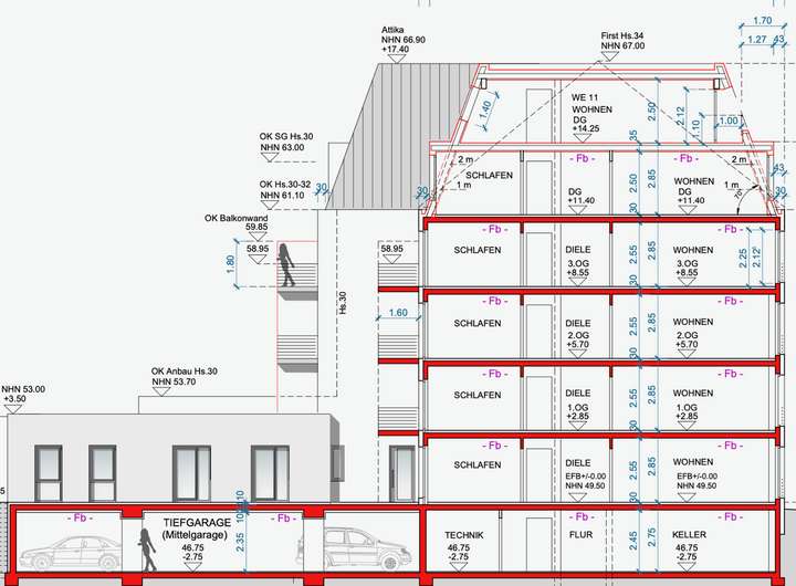 Eine Baugenehmigung für 740 qm Gesamtnutzfläche vorhanden (11Wohnungen/1Büro) plus 6 StPl zzgl Keller und weitere Terrassenflächen liegt vor.