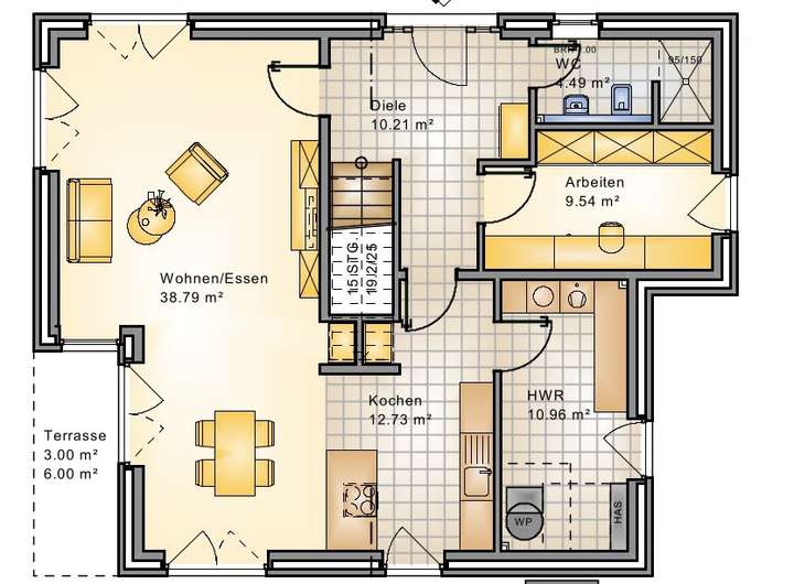 Nicht im Angebotspreis enthalten sind die Nebenkosten (Hausanschlüsse, Außenanlagen etc.)